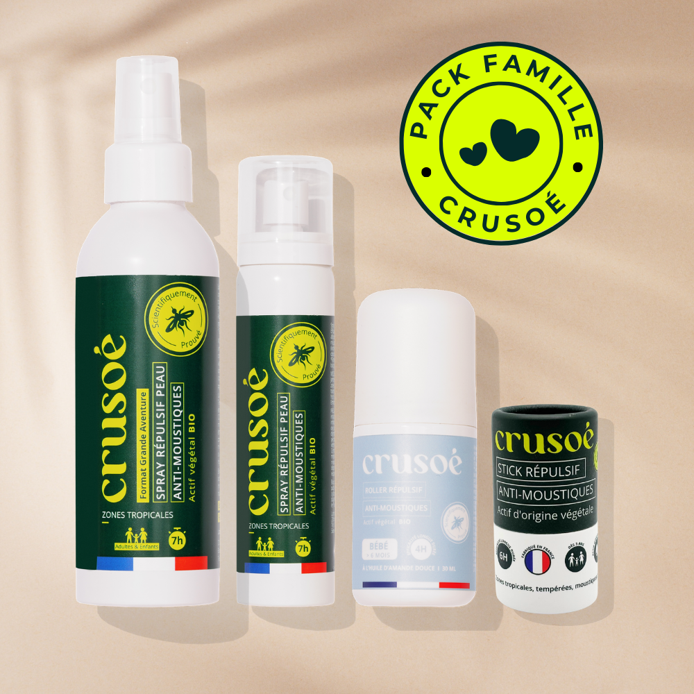 Le Stick Solide Anti-Moustiques Crusoé 20G, fabriqué en France, offre une protection naturelle et efficace pendant 6 heures contre les moustiques, y compris le moustique tigre, en zones tropicales et tempérées.